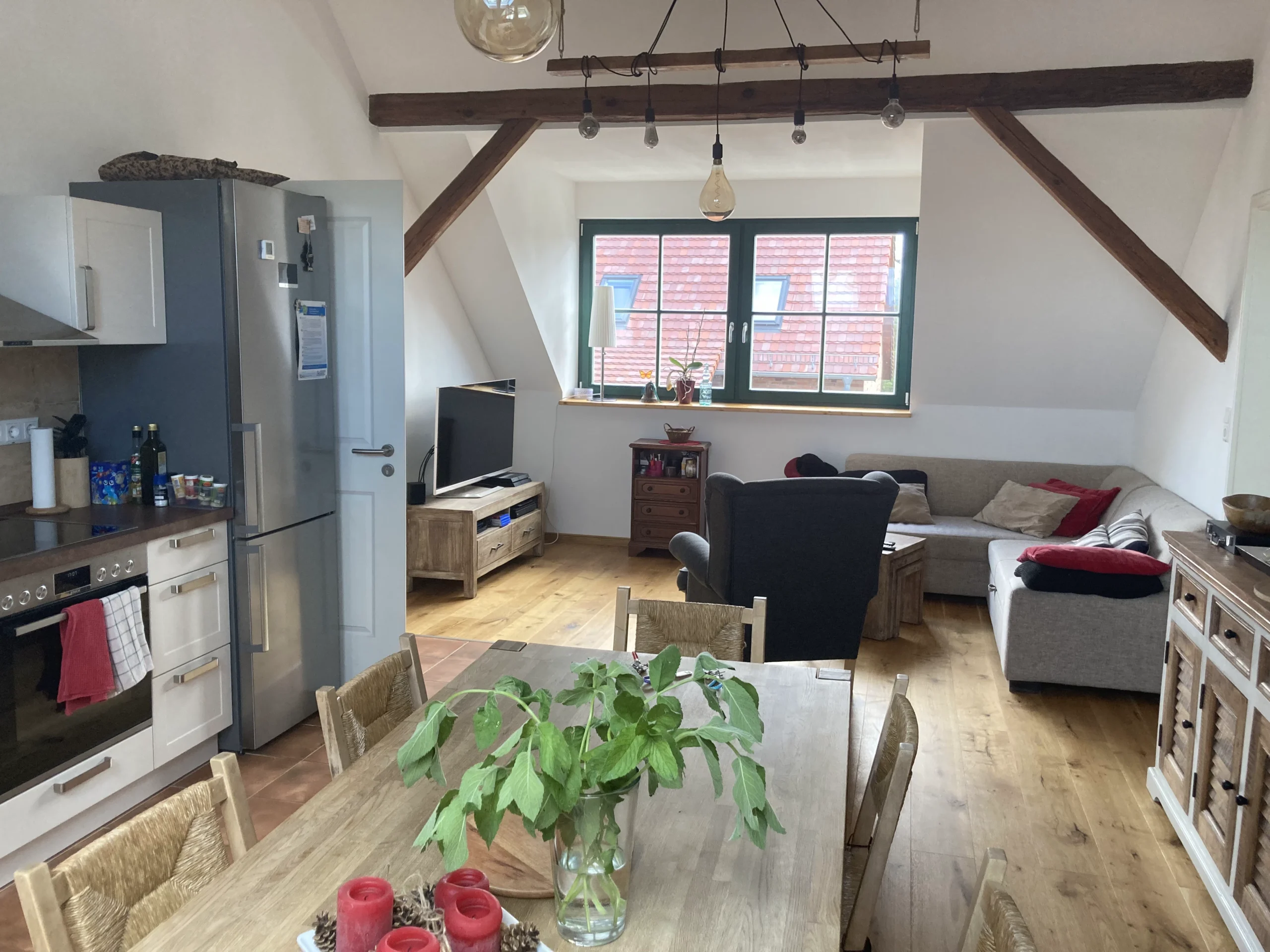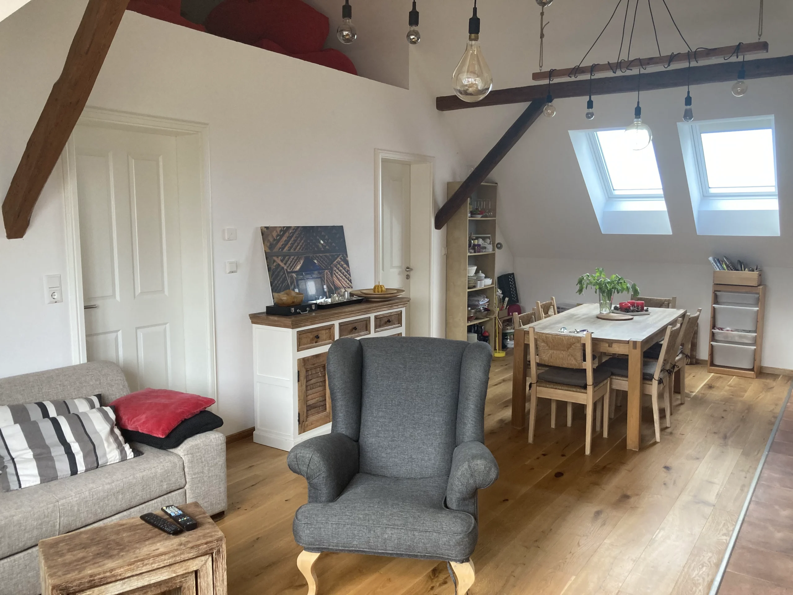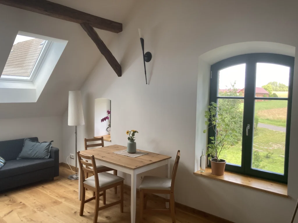 Unsere geräumige Ferienwohnung befindet sich im Dachgeschoß direkt über unserer Imkerei im wunderschönen Pückerdorf Groß Döbbern.